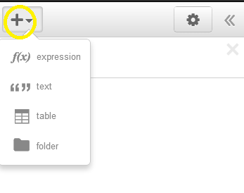 By clicking plus button you can also add different things like expression, text, table and folder.
